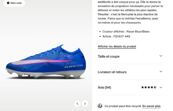 La Nike Mercurial Vapor 16 Elite est pensée pour les joueurs qui imposent leur rythme sur le terrain. Ultra légère, elle permet des appuis rapides et une grande liberté de mouvement, idéale pour déborder, éliminer et conclure les actions décisives.